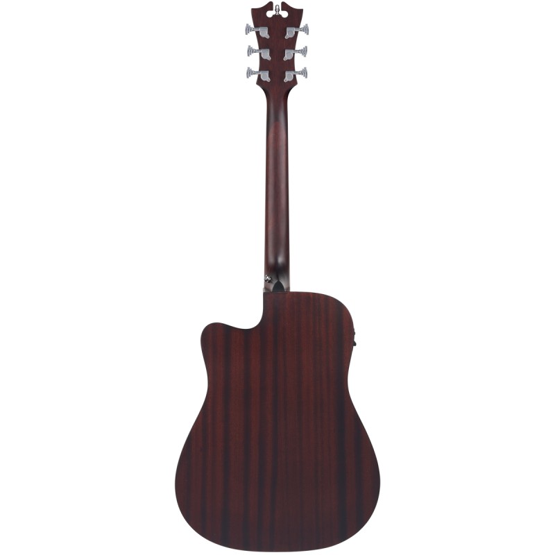 Korpus dreadnought z wycięciem (cutaway) – zapewnia głębokie, potężne brzmienie oraz łatwy dostęp do wyższych pozycji gryfu, co ułatwia grę solową.