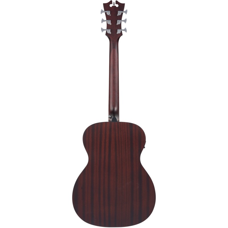 Korpus typu OM z laminowanego mahoniu – oferuje ciepłe, naturalne brzmienie z dobrą projekcją, idealne do akompaniamentu i gry palcami.